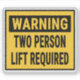 Warning Two Person Lift Required Sign