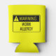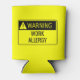 Warning Work Allergy funny warning sign in bright safety yellow and black font lettering with a exclamation warning symbol in a yellow triangle.