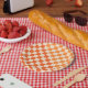 Warp Check Orange Checked Pattern Paper Plate