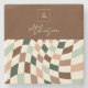 Warped Chequerboard Elegant Monogram Stone Coaster. Personalize with a monogram initial and name. Use the neutral colours as shown or use the Edit Tool to choose your own 5 colours for the checkers, background colour, and monogram elements. © Kimbellished, LLC