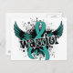 You are a Ovarian Cancer warrior. Wear your Valour proudly with our eye-catching Warrior t-shirts, merchandise, and apparel featuring a striking teal Ovarian Cancer awareness ribbon centred within a pair of distressed wings, a graffiti-splashed background, and grunge text. Empowering gift idea for the Ovarian Cancer warrior in your life.