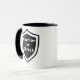Warrior for Christ two tone mug. Share your Christian commitment with this shield logo mug.