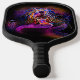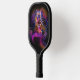 Pickleball paddle with an image of a neon warrior mermaid against a black background.