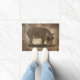 A photograph of a "beautiful" warthog on an appropriately grungy background. You won't mind wiping your feet on this and neither will the warthog.