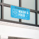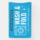 Create custom marketing outdoor signage for your laundromat and dry cleaning business using this modern blue and white laundry wash and fold service vinyl banner design. Featuring fully editable text and a washing machine graphic.