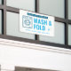 Create custom marketing outdoor signage for your laundromat and dry cleaning business using this modern blue and white laundry wash and fold service vinyl banner design. Featuring fully editable text and a washing machine graphic.