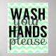 Wash Your Hands Please - Chevron - Mint and Grey Poster