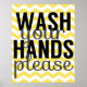Wash Your Hands Please - Chevron - Yellow Grey Poster