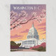 A beautiful vector illustration of the United States Capitol Building framed by blooming cherry blossom branches, set against a soft, colourful sky. The words "WASHINGTON D.C." are displayed at the top, capturing the iconic springtime beauty of the nation's capital.