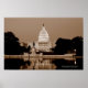 Beautiful shot of the U.S. Capitol building at night, above the reflecting pool.