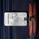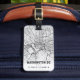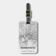A unique luggage tag featuring the city of Washington, DC. overhead map, including the latitude and longitude.