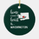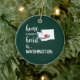 of the state and a red heart. Set on bottle green. Personalize one side with