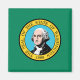 This design features the flag of the State of Washington, which is located in the Pacific Northwest region of the United States. It is named after George Washington (1732–1799), the first US president. Washington is often referred to as Washington State to distinguish it from the nation's capital, Washington DC. The flag depicts the state seal, which contains an image of state namesake George Washington, on a field of dark green. It is the only US state flag with a field of green; it is also the only state flag that contains the image of an American president.