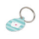 Let your furry friend show some home state pride with this cute Washington pet ID tag. Design features a white silhouette map of the state of Washington with a pink heart inside, on a tone on tone turquoise stripe background. Add your pet's name and contact information to the back in white lettering on an aqua background.