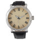 Vintage watch face design has bold roman numerals on a parchment coloured background. Try this design on any watch on this website. Derived from freepik.com.