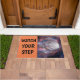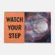 This funny welcome mat warns guests to "Watch Your Step" and avoid falling into the black hole.