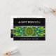 Elegant and modern green Watching Over You mandala design where you can customize your company name and 'a gift for you text' on the front. The back features the same mandala, though a little smaller, with plenty of space for you to personlize the text to your gift card needs.