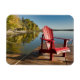 This amazing Getty Images photo features a red chair on a dock at the cottage looking out onto the water.