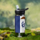 Stay hydrated with pride using our water bottle featuring the flag of Iowa!