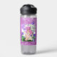 Water bottle with trendy young girly with pink hair.