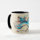 water cat leaps across tan background mug