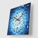 water drops, wall clock, dark blue tones, droplets on glass, abstract design