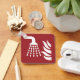 Water fog applicator and flame icon on red background. Custom text at the back side.