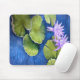 Two purple water lilies with green and brown lily pads in a blue water pool. This is an oil painting I did on commission. I have several water lily paintings that will eventually become products here in my store.