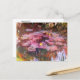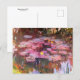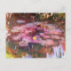 A fine art postcard with the landscape impressionist painting, Water Lilies (1917) by Claude Monet (1840-1926). A pond of pink hued lily pads with yellow flowers. Monet produced many paintings of water lilies from his own gardens in Giverny, France.