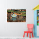This poster features an original photo of a quiet, summer pond. A graceful, white water lily takes centre stage, surrounded by lily pads dotted with water and reflections of the pond wall beyond.