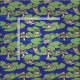 Water lily textile pattern with white lilies and leaves on a blue background.