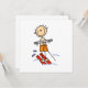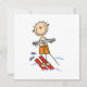 A stick figure boy water skis on cute stick figure water skiing T-shirts, mugs, mousepads, cards, stickers, and more, great for anyone who loves the beach and water skiing, can be customized with text or a name!