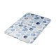 A lovely watercolor pattern of blue circles, some striped and some dotty, makes this bath mat a stylish addition to any home.