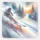 Watercolor Abstract Downhill Skier Square Sticker