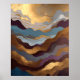 Watercolor Abstract Painting Gold Purple Blue Poster
