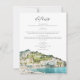 This wedding details card features a watercolor painting of the Amalfi Coast skyline. Easily edit *most* wording to meet your event needs. Change the background colour and add additional text on the backside if needed.