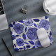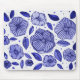 Delicate flowers and leaves made with watercolor shapes and inked details. Blue palette.
