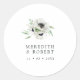 Watercolor Anemones Black & White Winter Wedding Classic Round Sticker. Personalize with your names and wedding date.
