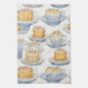 Watercolor art. Fancy desserts. Cute tea cup towel