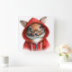 Watercolor Artwork Brown Rabbit in a Red Hoodie Square Wall Clock