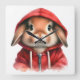 Watercolor art featuring an adorable brown rabbit wearing a red hoodie.