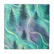 Ceramic Tile - Watercolor-inspired Aurora Borealis sky above a dark pine forest—perfect for nature lovers, winter themes, and atmospheric night-sky themes.