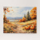 Watercolor Autumn Road Pumpkin Falling Leaves Jigsaw Puzzle