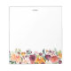 Whimsical floral notepad featuring watercolor illustrations of orange and burgundy flowers with foliage garland. This floral notepad will be perfect as a personalized gift. Personalize by adding a name or short phrase.