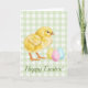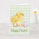 Watercolor Baby Chick And Eggs On Green Easter Card
