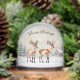 A pretty snow globe featuring an illustration of two baby reindeer in a winter snow scene, in a watercolor style. The words 'Winter Blessings' curve above the animals in elegant script typography. On the back is the greeting 'Merry Christmas' and custom text for your own individual message, with a faint backdrop picture of three reindeer in snow. This charming festive gift and keepsake is ideal for adding a touch of winter wildlife to your decor.