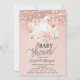 Watercolor Baby Swan Rose Gold Glitter Drips Invitation