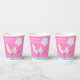 Watercolor whimsy swan personalized name and age birthday party pink paper cup. Personalize with your own name and age, reads Happy birthday Madison 8. Pretty shades of pink, aqua blue, and white. Other matching dancing ballerina swan items are available. An original design and whimsy swan uniquely painted in watercolor by Sarah Trett for www.mylittleeden.com.