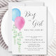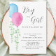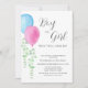 It features pink and blue watercolor balloons with eucalyptus and stylish script typography that says "Boy or Girl."