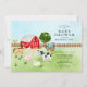 Adorable farm animals baby shower invitation featuring a horse, pig, sheep cow, ducks, chickens and roaster for a girls, boys or neutral baby shower.